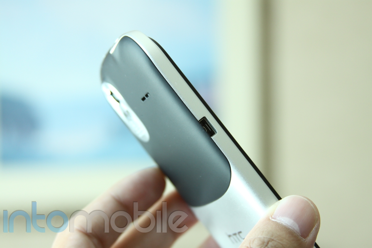 Moving to the right spine, there is a dedicated camera button and a dedicated video camera button. I'm not sure the dedicated video camera button is necessary but it's super responsive and if you take a lot of mobile video, you'll appreciate it. Above that, there's a single bar which operates as the volume buttons and I would have preferred separate volume up and volume down buttons. On top, there's the power and unlock button and the standard headphone jack on a slightly sloped surface. Thankfully, headphones plug in and stay in quite easily (nope, this one doesn't rock Beats Audio, you'll have to wait for the HTC Rezound).